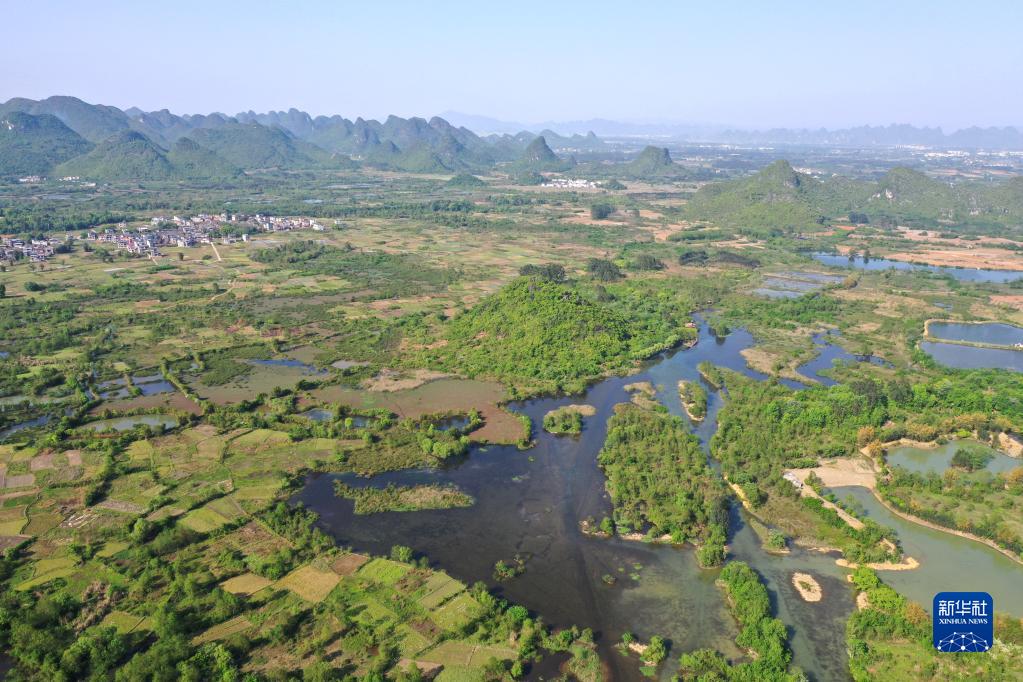 春意日浓,位于广西桂林的岩溶湿地会仙湿地内,岛屿星罗棋布,山水相得益彰,草木吐翠,生机盎然,别有一番独特春色。