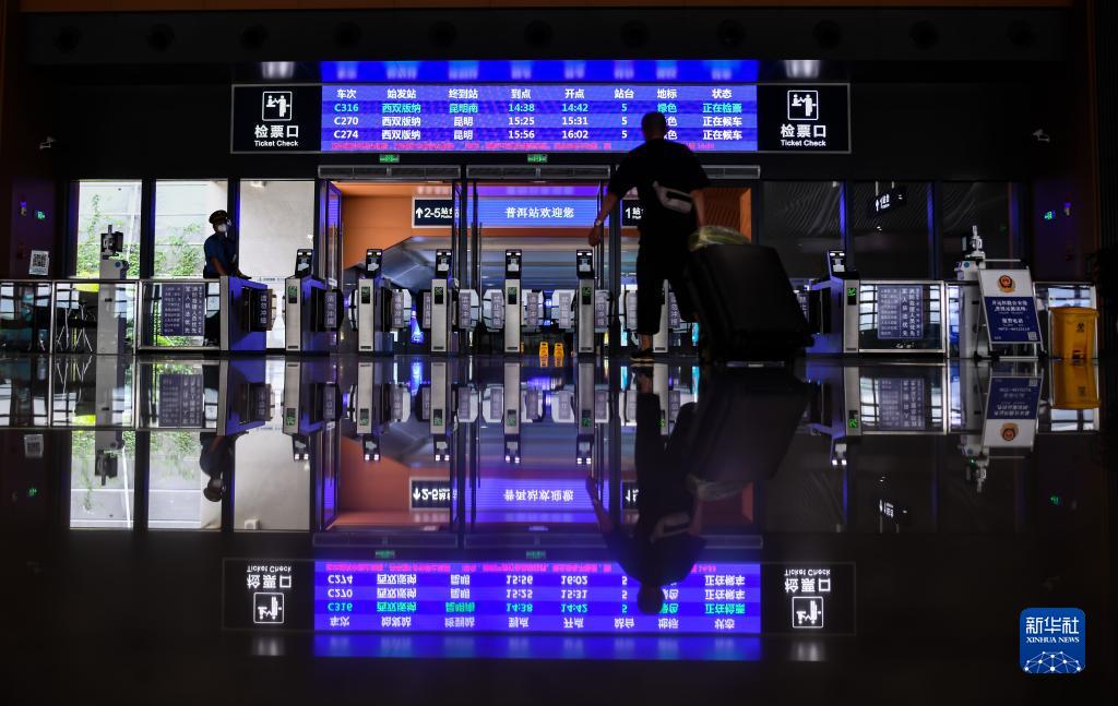 旅客在中老铁路普洱站上车(6月1日摄)。