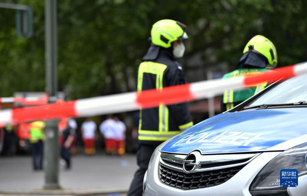 6月8日,一辆警车停在德国柏林车辆冲入人群事件现场附近。新华社记者 任鹏飞 摄