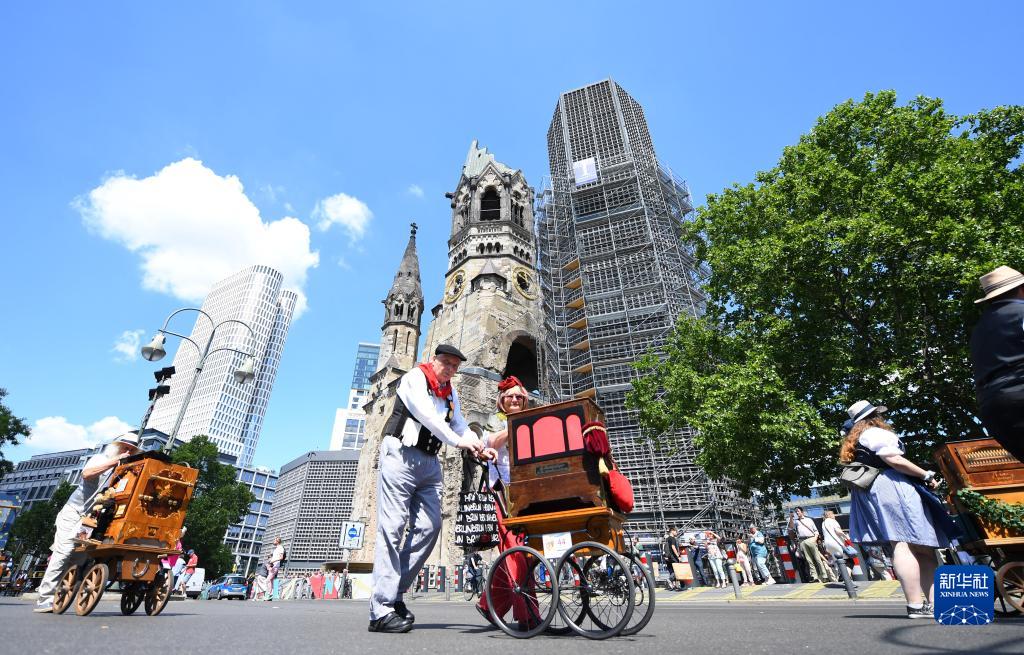 7月2日,手摇风琴表演者在德国柏林参加艺术节巡游。