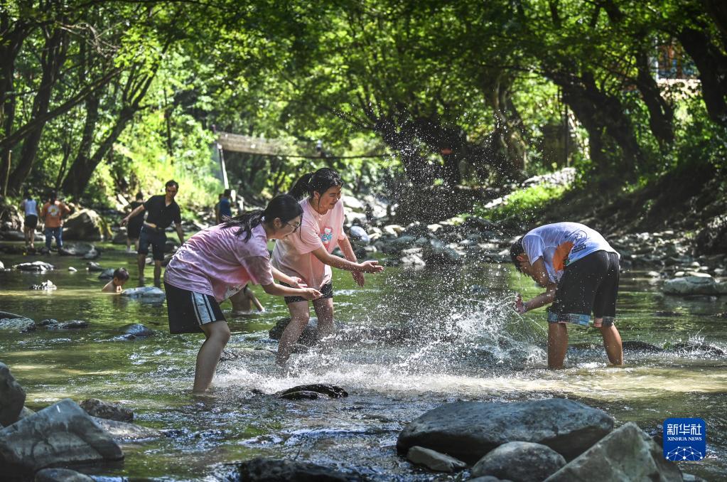 盛夏时节,巴山深处的陕西省安康市岚皋县四季镇杨家院子景区因地制宜,利用穿越景区的清澈河水,开展丰富多彩的消夏活动,吸引众多游人参与。