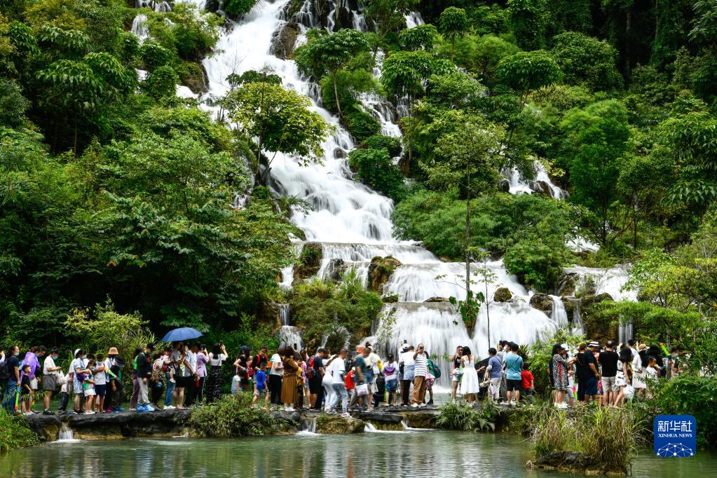 暑假期间,众多游客来到贵州省荔波县,畅游青山绿水,感受世界自然遗产地之美。今年以来,荔波县各景区相继推出多项促进旅游消费政策,在做好疫情防控的同时,助力旅游市场逐步复苏。