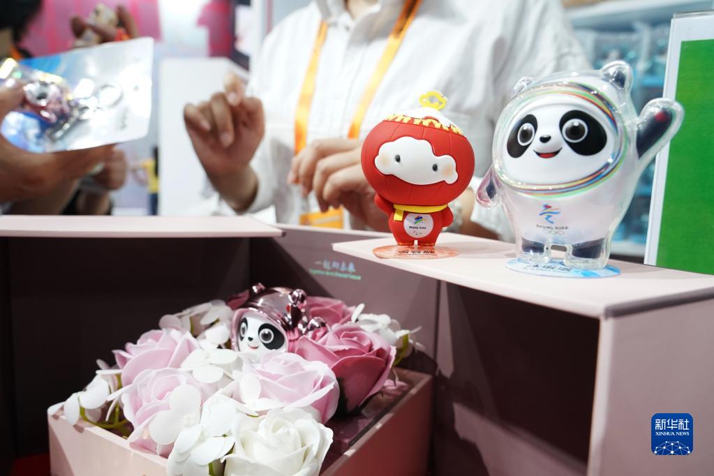 9月5日在服贸会首钢园区的文旅服务专题展区拍摄的北京冬奥会特许商品。