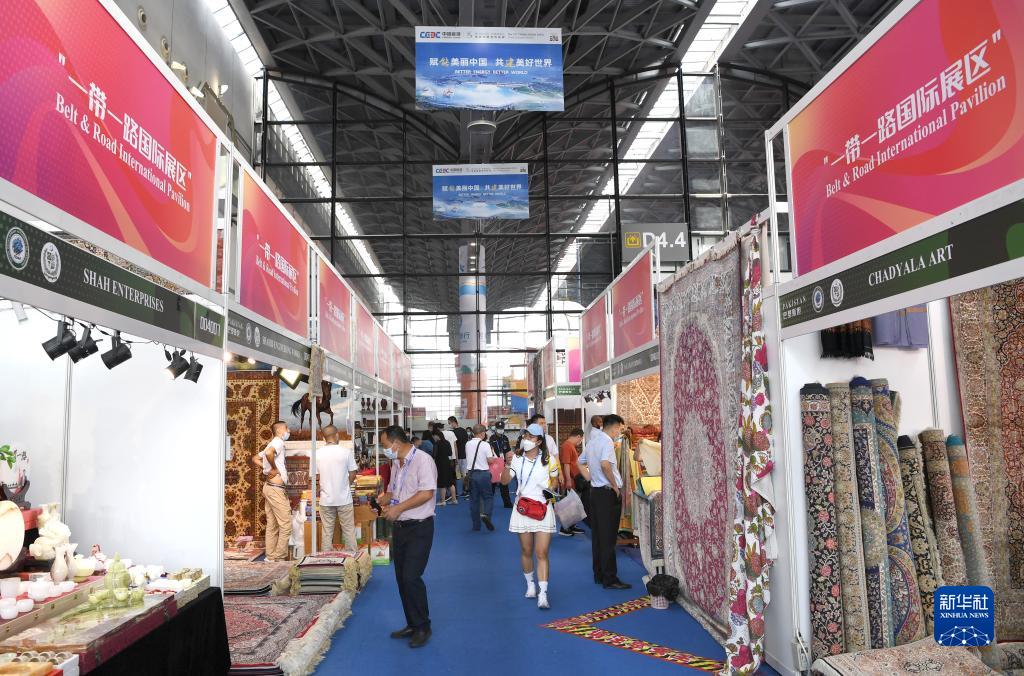 正在广西南宁举行的第19届中国—东盟博览会上,“一带一路”国际展区商品荟萃,吸引众多消费者参观选购。