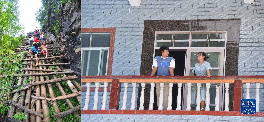 左图:在广西大化瑶族自治县板升乡弄勇村弄顶屯,弄勇小学三年级学生蓝春香(前右)爬“天梯”去上学(2012年9月3日摄);右图:即将上大学的蓝春香(右)向学长蒙宣任了解大学生活(2022年8月23日摄)。目前,弄勇村已经屯屯通公路(拼版照片)。 位于桂西、桂北的大化、都安、融水、融安等地,地处滇桂黔石漠化片区,自然条件恶劣,曾是国家和广西扶贫开发工作重点县。十年来,通过持续推进农村基础设施建设,狠抓特色产业发展,全面落实教育惠民政策,强化粤桂协作等,各地区如期脱贫摘帽,实现整体消除绝对贫困,开启乡村振兴的新征程。如今,大山里的生产生活条件得到明显改善,经济社会发展日新月异,群众的获得感、幸福感、安全感不断增强。 新华社记者 黄孝邦 摄 |