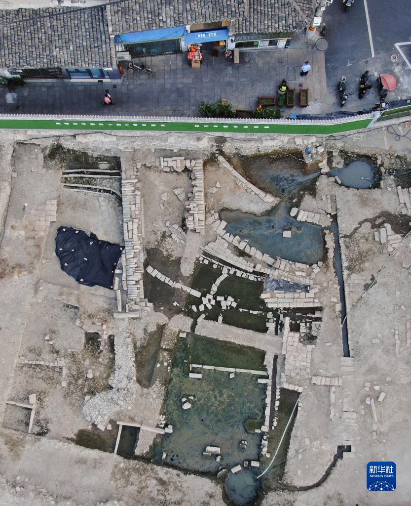 俯瞰朔门古港遗址发掘出的瓮城遗址(10月10日摄,无人机照片)。
