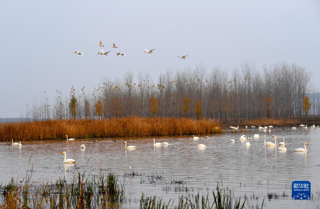 初冬时节,大批天鹅陆续南迁来到河南省三门峡市黄河湿地栖息越冬。近年来,当地大力推进黄河湿地生态建设,加强天鹅保护力度,来这里越冬的天鹅数量逐年增多。