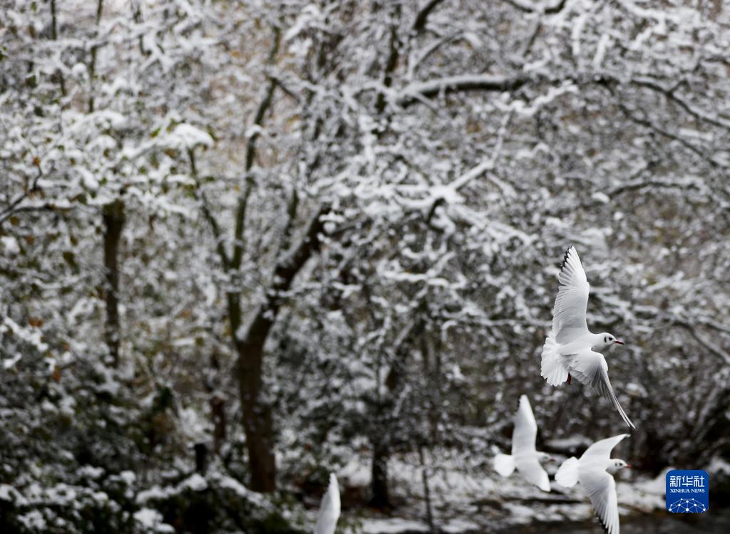 英国伦敦近日出现降雪天气。