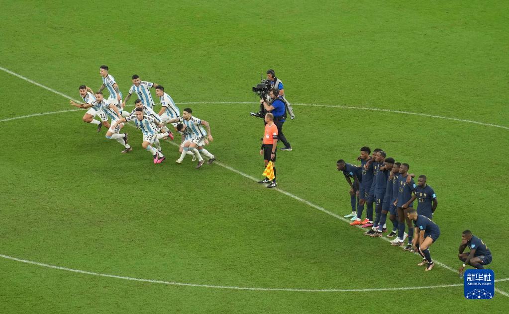 12月18日,阿根廷队球员在比赛后庆祝胜利。新华社记者 潘昱龙 摄