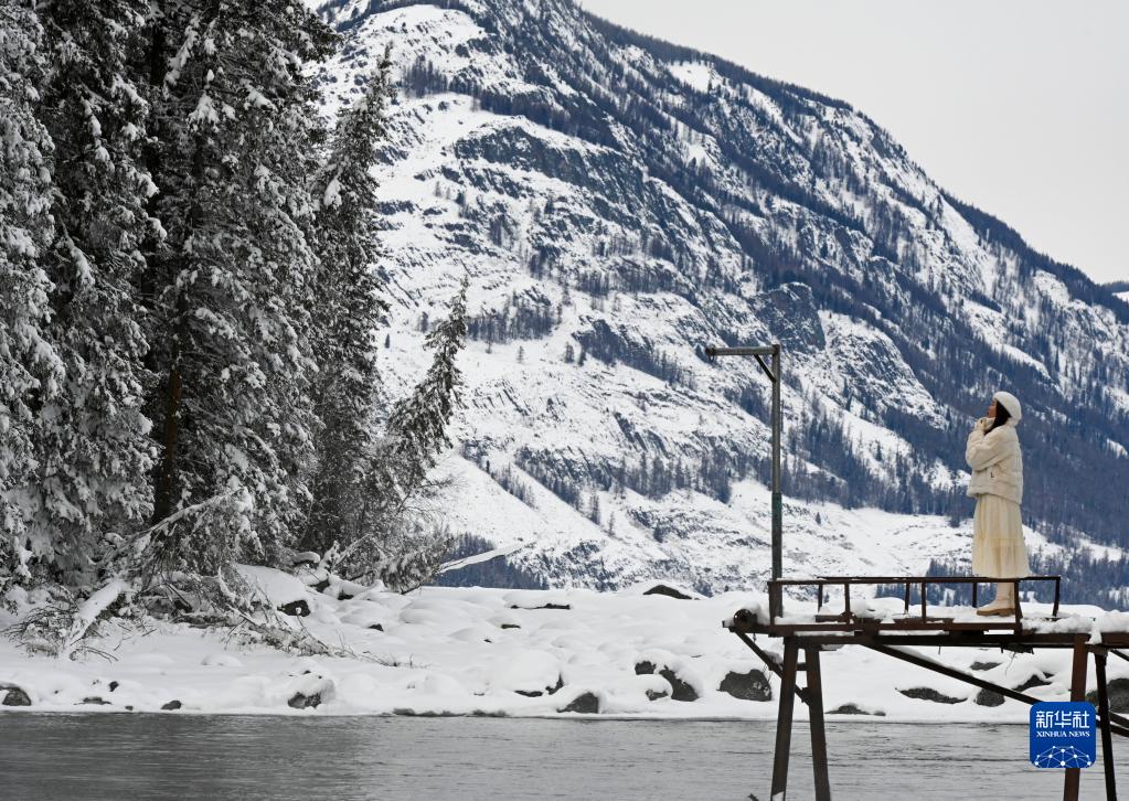 冬日,位于新疆阿勒泰地区的喀纳斯景区银装素裹,雪地、冰湖、雾凇相映,美丽景色宛若童话世界。