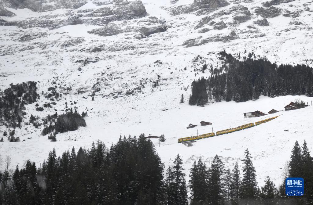 1月12日,一辆运送游客的列车在瑞士少女峰地区的山间行驶。