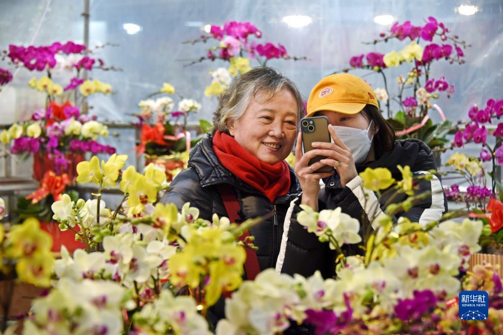 市民在山东青岛南山花卉市场拍摄蝴蝶兰(1月20日摄)。新华社记者 李紫恒 摄