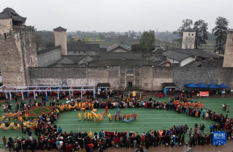 当日,四川省泸县在全国重点文物保护单位——屈氏庄园前举行泸州市2023年“二月二·龙抬头”民俗文化展示暨泸县首届“龙文化宣传日”活动。传统的舞龙活动表达人们期盼新的一年风调雨顺、五谷丰登。