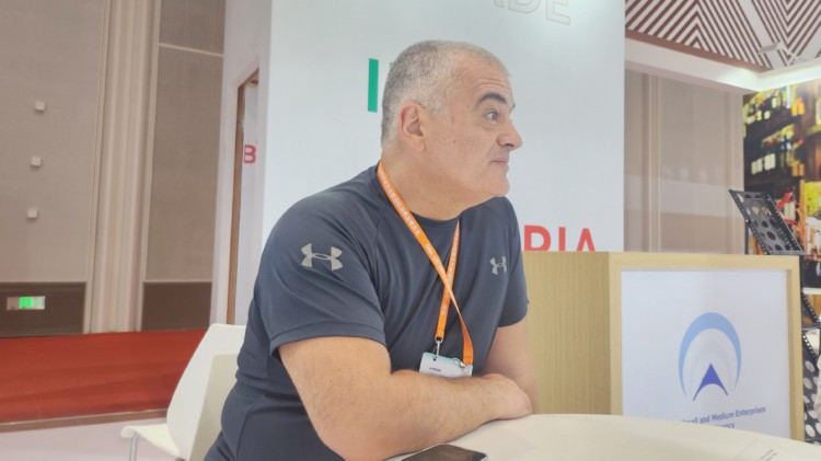 保加利亚参展商迪涅夫(Latchezar Dinev)接受采访。
