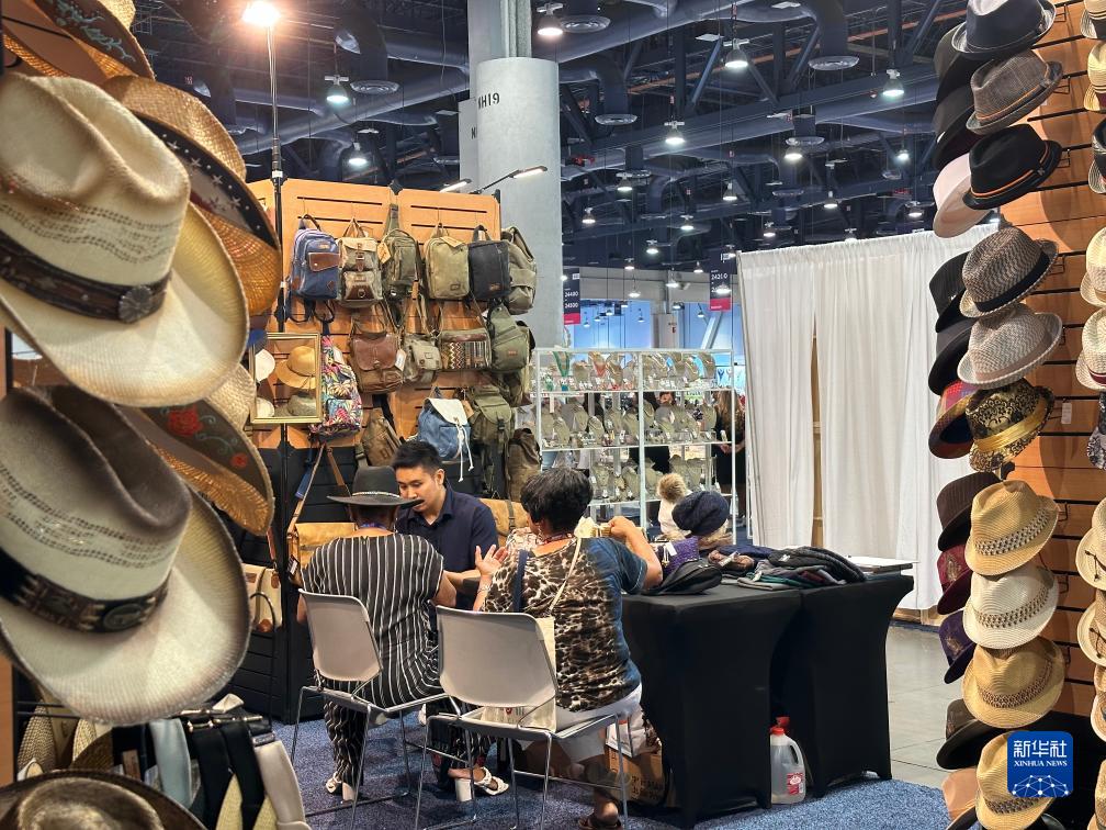 8月20日,在美国拉斯维加斯国际日用品和礼品交易会上,批发商与客户洽谈业务。 新华社记者 黄恒 摄