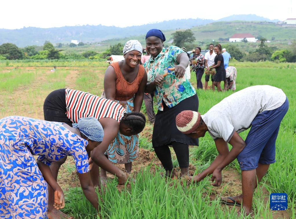 9月19日,当地员工在尼日利亚阿布贾的中国援尼日利亚农业技术示范中心起秧苗。
