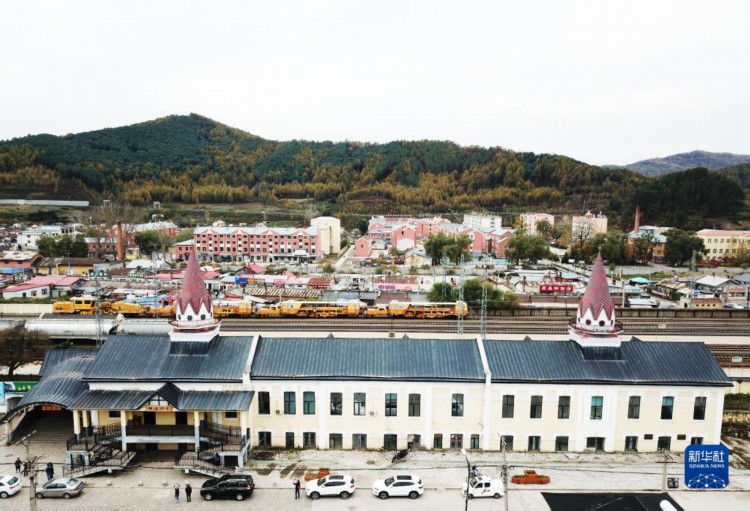 这是10月3日拍摄的拥有百年历史的横道河子火车站(无人机照片)。