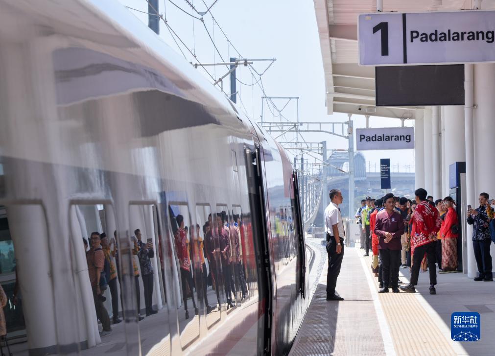 10月2日,一列雅万高铁动车组停靠在印度尼西亚帕达拉朗车站。
