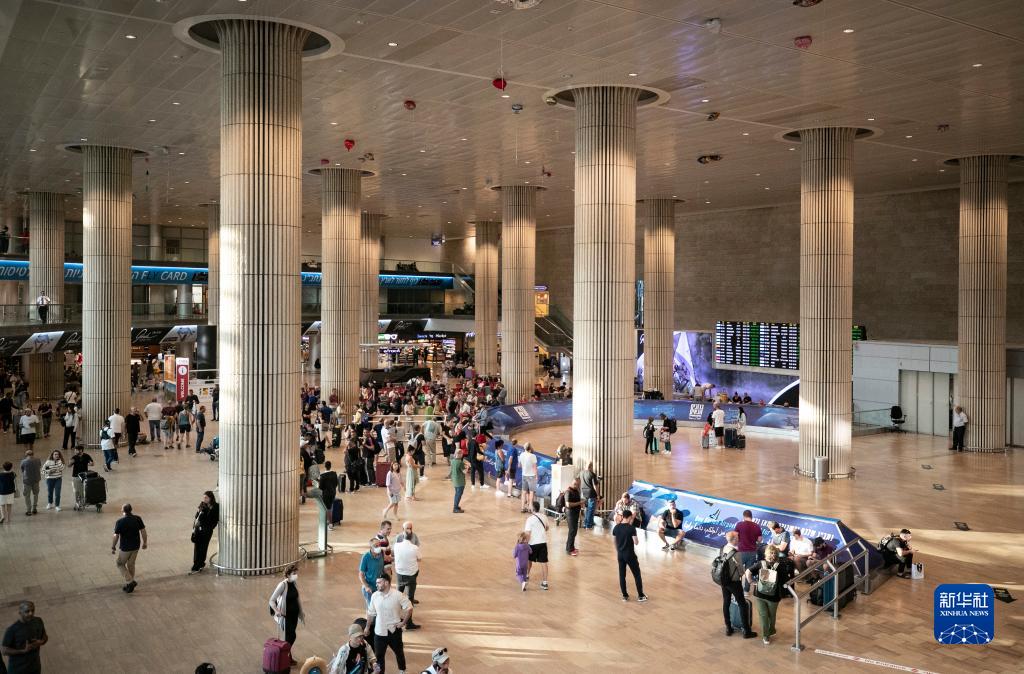 10月8日,旅客在以色列特拉维夫附近的本-古里安国际机场候机出行。