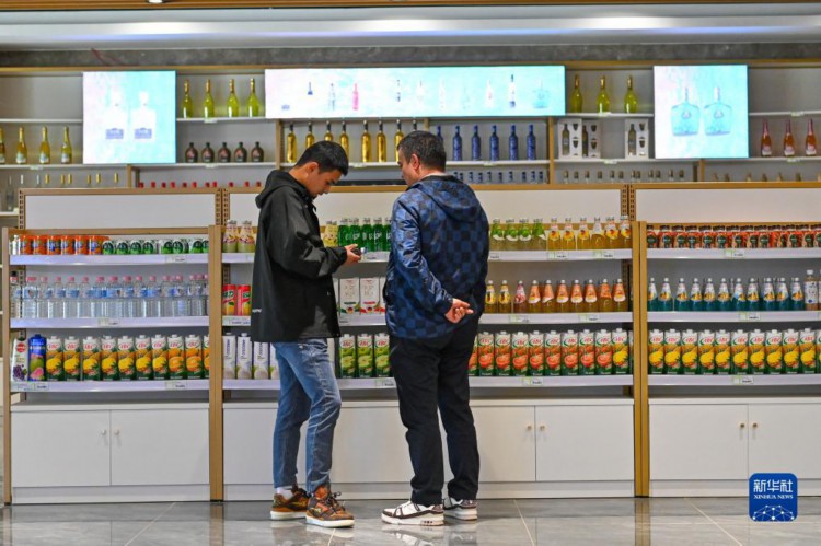 顾客在新疆喀什跨境电商进出口商品展示交易中心挑选商品(11月4日摄)。