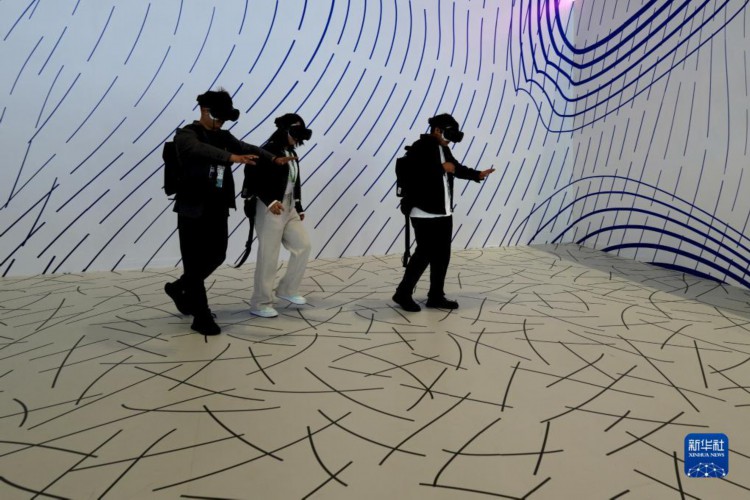 11月7日,在第六届进博会技术装备展区,观众体验“VR行走沉浸剧场”。