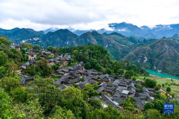 这是11月15日拍摄的贵州省石阡县国荣乡楼上古寨风光。