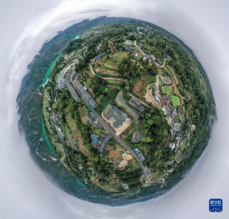 这是11月15日拍摄的贵州省石阡县国荣乡楼上古寨风光(无人机全景照片)。