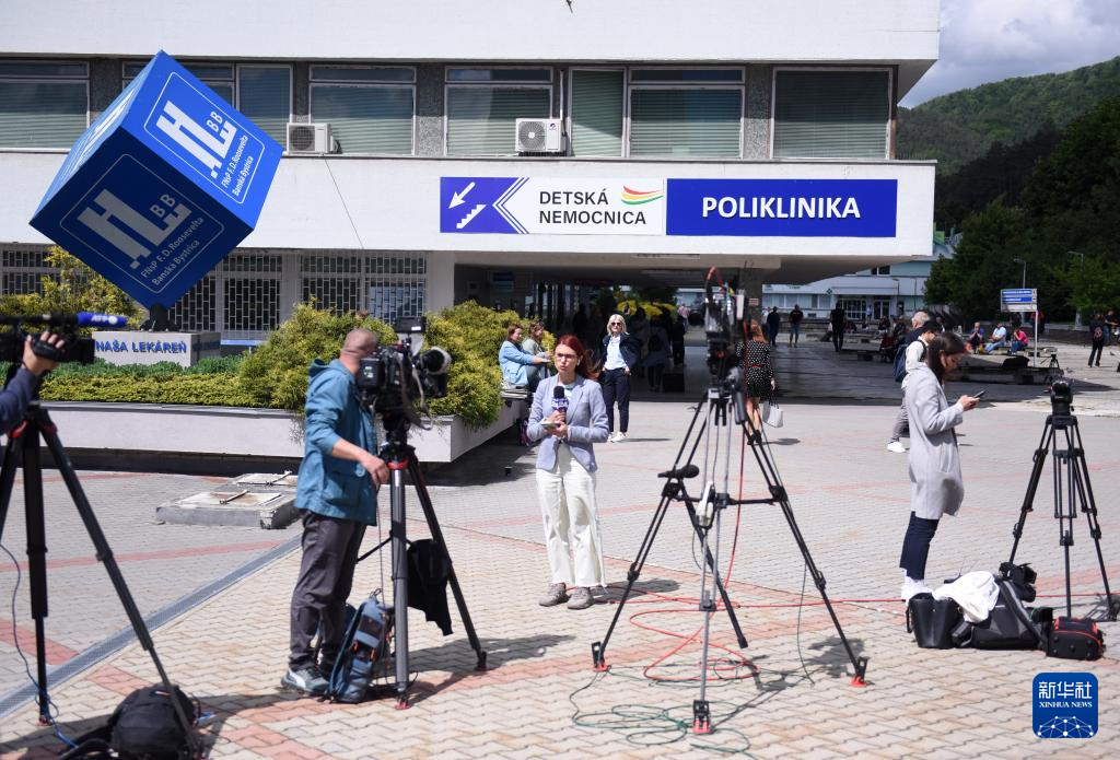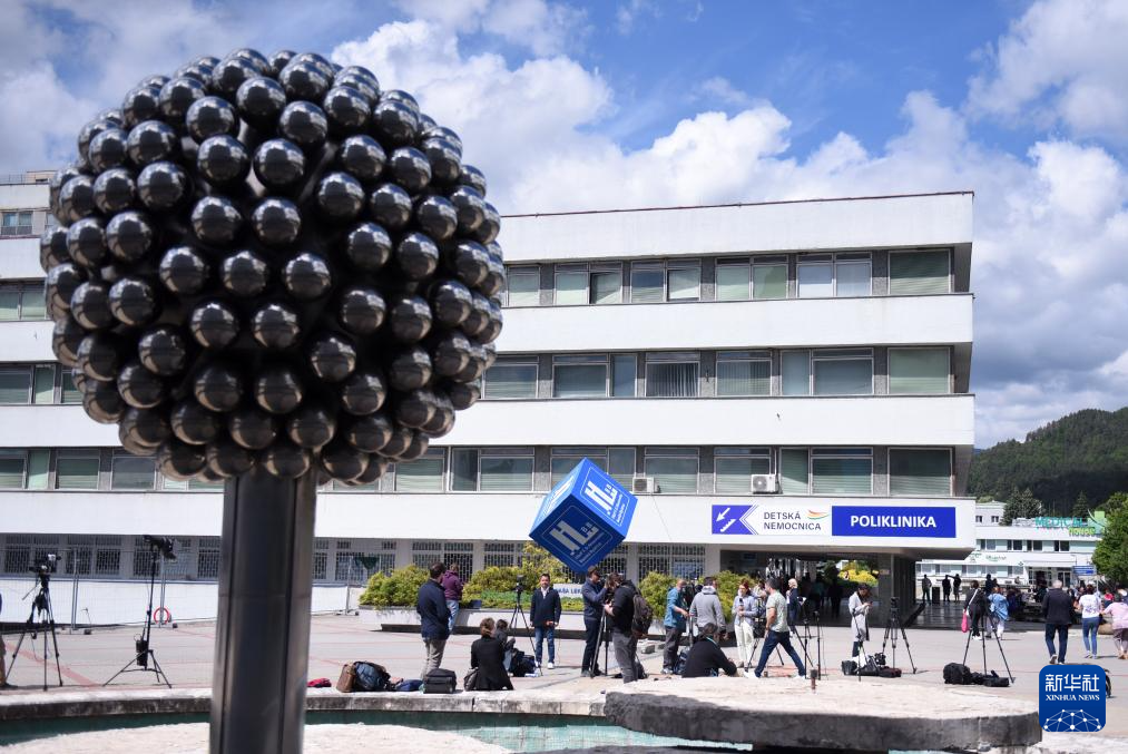 5月16日,在斯洛伐克班斯卡-比斯特里察,媒体记者聚集在斯洛伐克总理菲佐被送至的医院外。