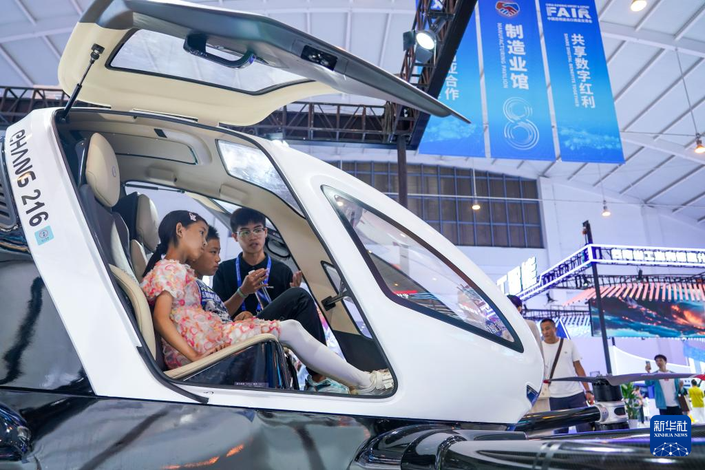7月25日,小朋友们在第八届南博会上了解无人驾驶载人航空器。