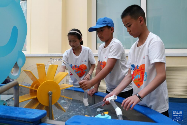 7月28日,孩子们在中国儿童中心体验科普游戏。