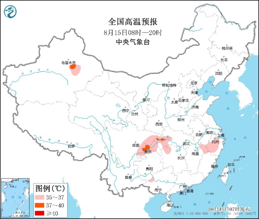 未来三天,江南南部、华南及四川盆地等地部分地区有分散性强降雨,并伴有强对流天气,降雨强度大;西北地区东部、内蒙古、华北、东北地区、黄淮等地有一次降雨过程,青海、甘肃、宁夏、陕西等地部分地区已出现较强降雨,需防范持续降雨和局地短时强降雨可能引发的次生灾害。由于副热带高压减弱和降雨铺展,高温明显减弱。高温主要集中在四川盆地,湖北、湖南、浙江、江苏等地虽有高温,但范围较小。