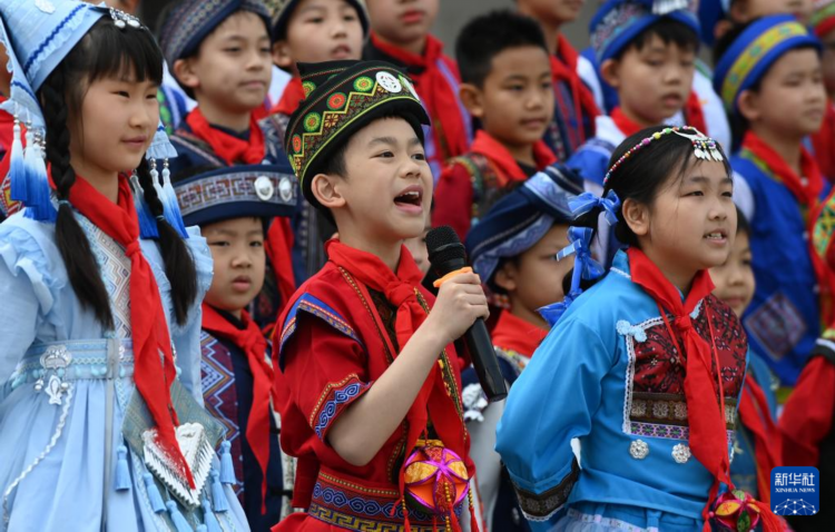 3月27日,在广西南宁市滨湖路小学,学生在唱山歌。