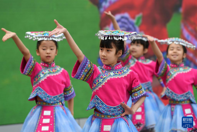 当日,广西南宁市滨湖路小学举办“石榴花开三月三 籽籽同心向未来”活动,通过唱歌、跳舞、美食展示等丰富多彩的活动,迎接传统节日“三月三”的到来。