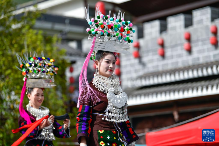 4月13日,表演者在贵州省台江县参加姊妹节“T台”服饰秀。