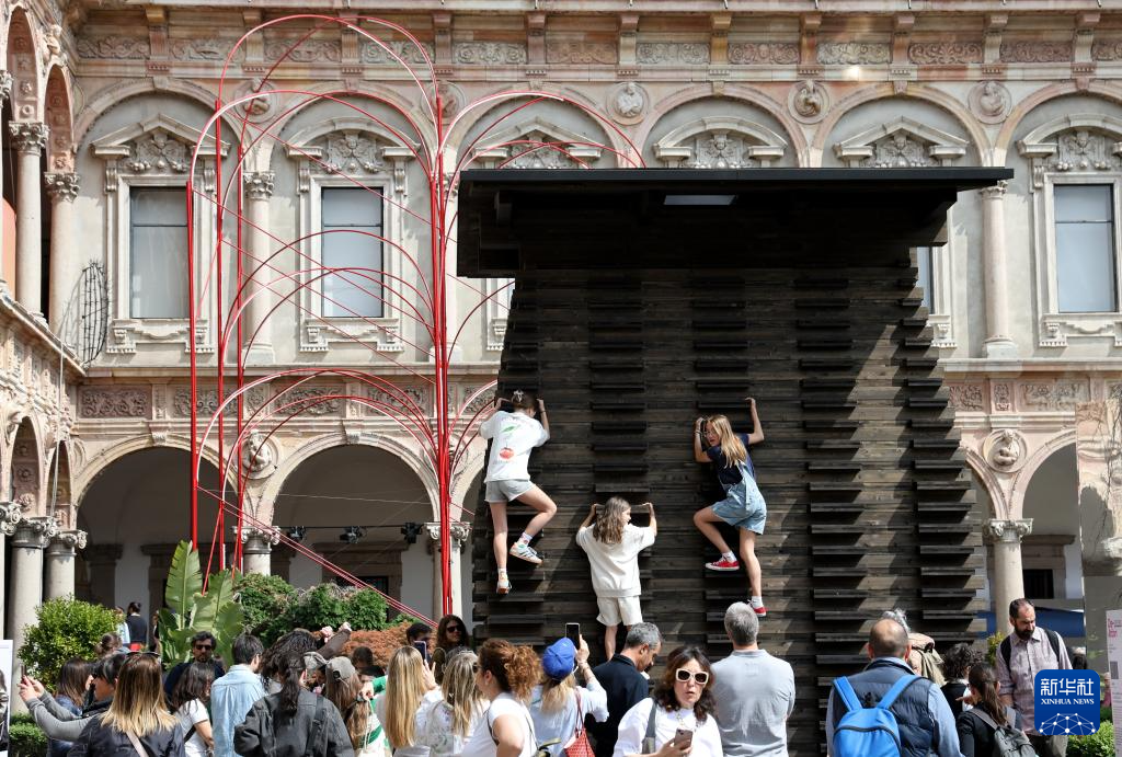 4月12日,在意大利米兰,人们在2025米兰设计周米兰大学展区体验展品。