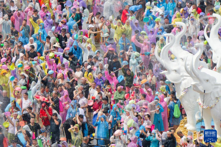 4月15日,人们在云南省西双版纳傣族自治州景洪市泼水广场泼水狂欢。