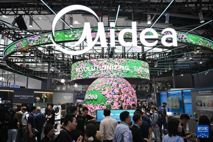 这是4月15日拍摄的第137届广交会智慧生活专区的美的展台。