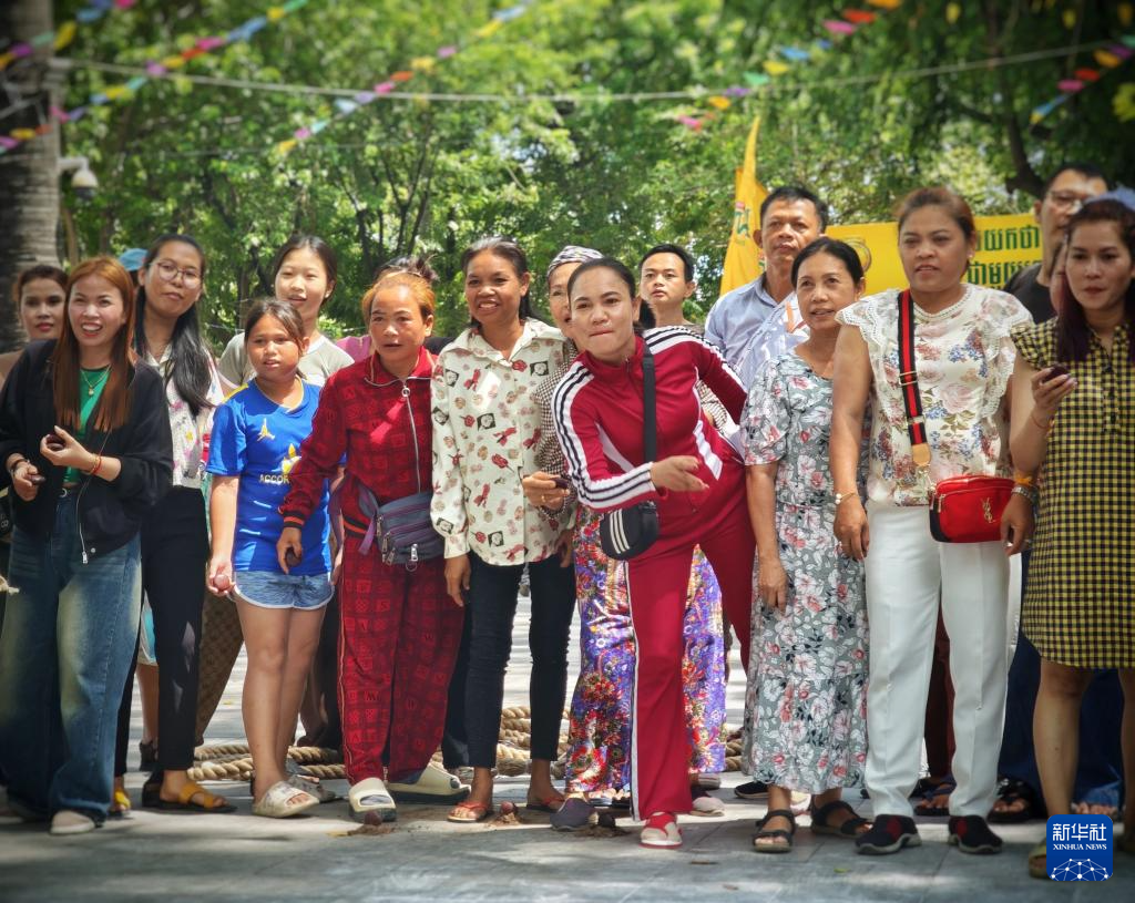 4月14日,人们在柬埔寨金边的塔山寺参加新年祈福活动。