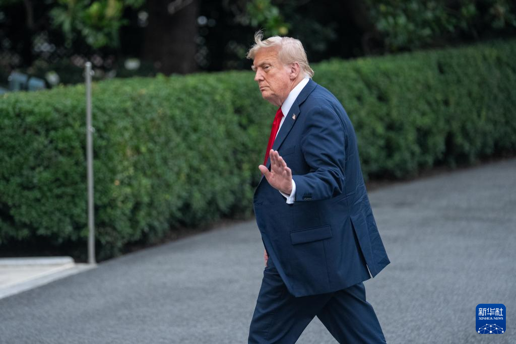7月13日,美国总统特朗普乘直升机返抵华盛顿白宫。