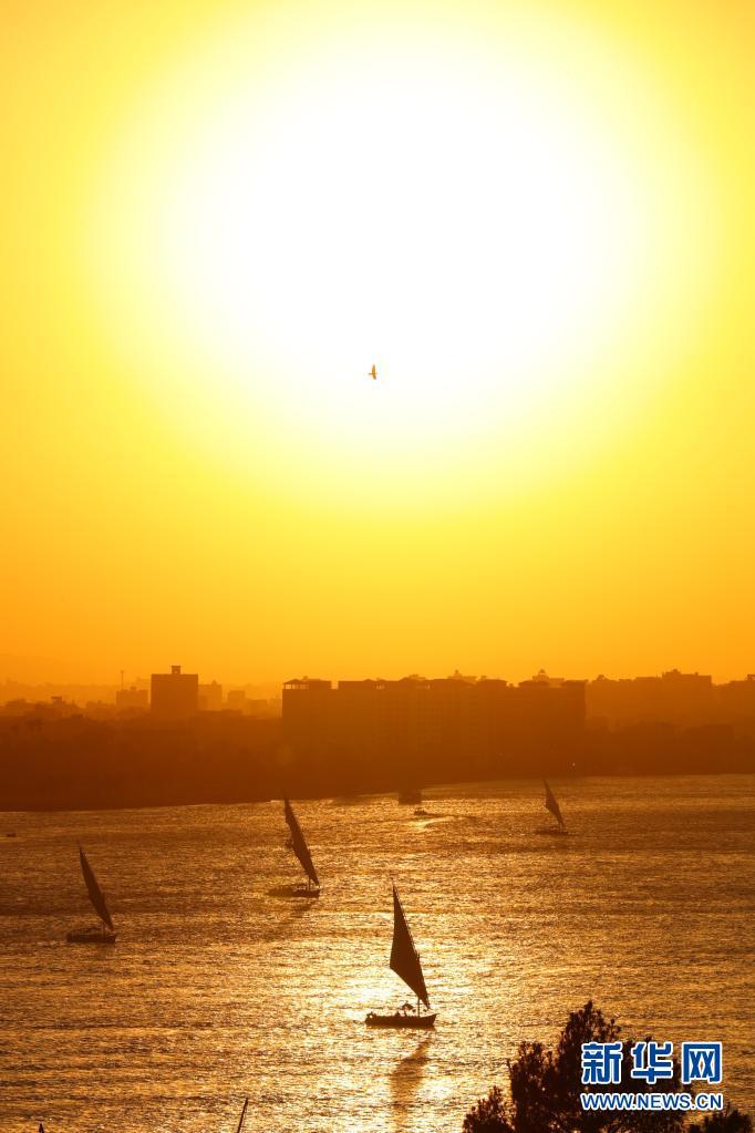 当日,日落时分的开罗沐浴在金色的阳光中,扬帆的小船航行在金色的尼罗河上,景色和谐优美。新华社记者 隋先凯 摄
