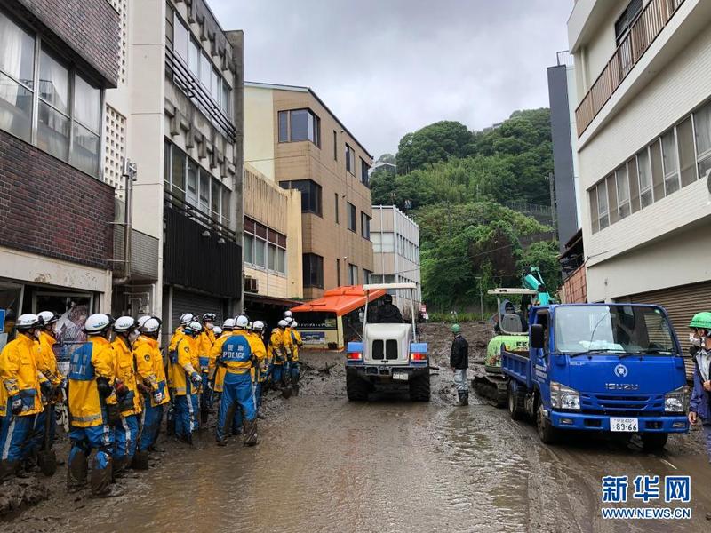 7月4日,救援人员在日本静冈县热海市的泥石流灾害现场工作。