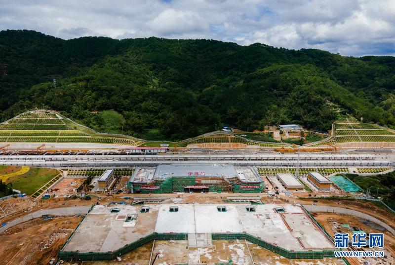 这是7月2日拍摄的正在建设中的中老昆万铁路宁洱站(无人机照片)。