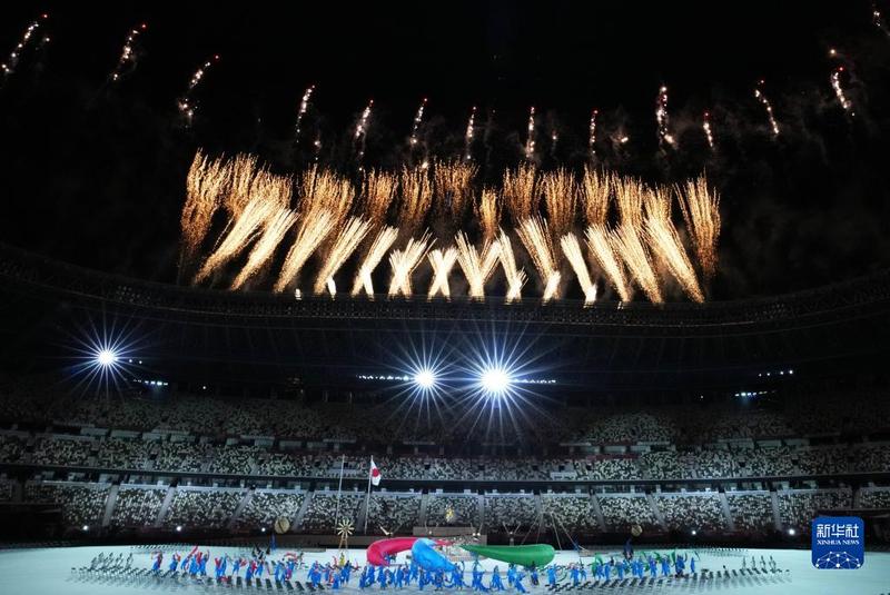 8月24日,第16届夏季残疾人奥林匹克运动会开幕式在日本东京举行。这是开幕式上的焰火表演。新华社记者 张金加 摄 新华社东京8月24日电(记者胡佳丽 赵建通 董意行)24日晚,第16届夏季残奥会在日本东京新国立竞技场开幕。开幕式包括文艺表演、升旗、运动员入场、宣誓等环节,国际残奥委会主席安德鲁·帕森斯、东京奥组委主席桥本圣子分别致辞。 “不敢相信我们做到了!很多人认为这不可能。感谢多方努力,全球最具变革性的体育赛事即将开始。”帕森斯说。 “当不确定性的阴影笼罩在我们身上时,他们从未停止训练,他们从未停止追求梦想,他们从未停止相信今晚会来到这里,他们是一种自然且向善的力量。”帕森斯在致辞中表达了对残奥运动员的敬意,“改变从运动开始。从明天开始,残奥运动员将再次改变世界。”他还对东京奥组委、日本政府、东京都政府以及日本民众表示感谢。 “东京作为第一个举办了两届夏季残奥会的城市,创造了历史。”桥本圣子说,“57年过去了,我们希望通过东京残奥会建立一个相互支持、相互理解、不存在任何歧视和障碍的社会。”