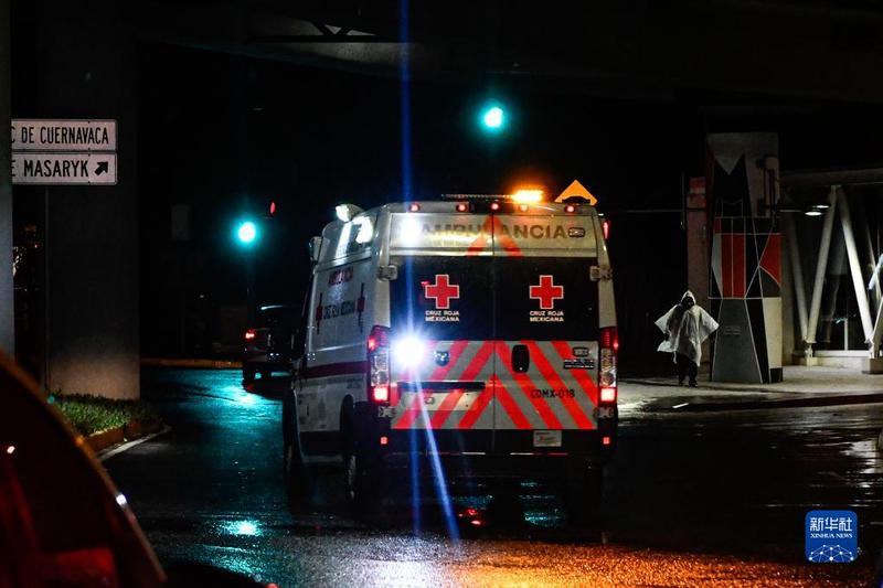 9月7日,在墨西哥首都墨西哥城,地震发生后一辆救护车行驶在道路上。