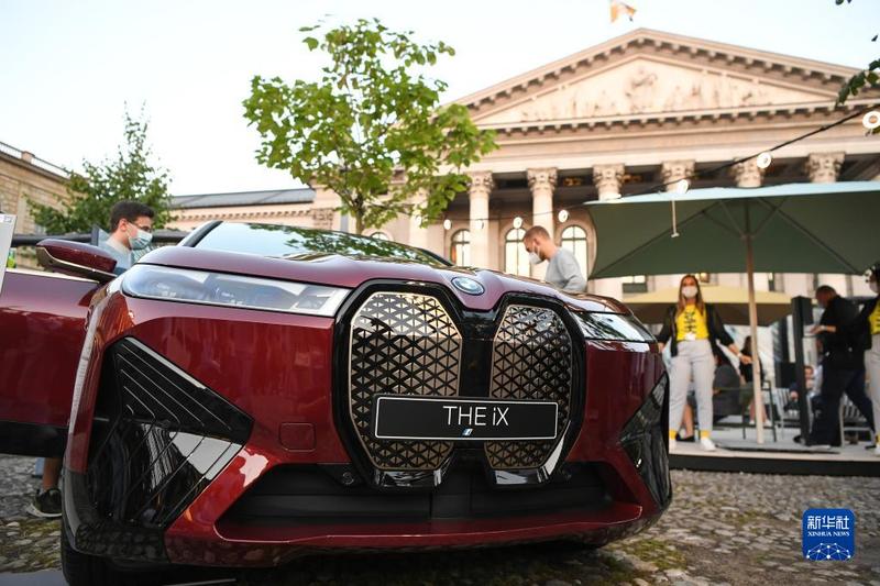 这是9月8日在德国慕尼黑国际车展宝马汽车户外展区拍摄的一台宝马iX电动车。