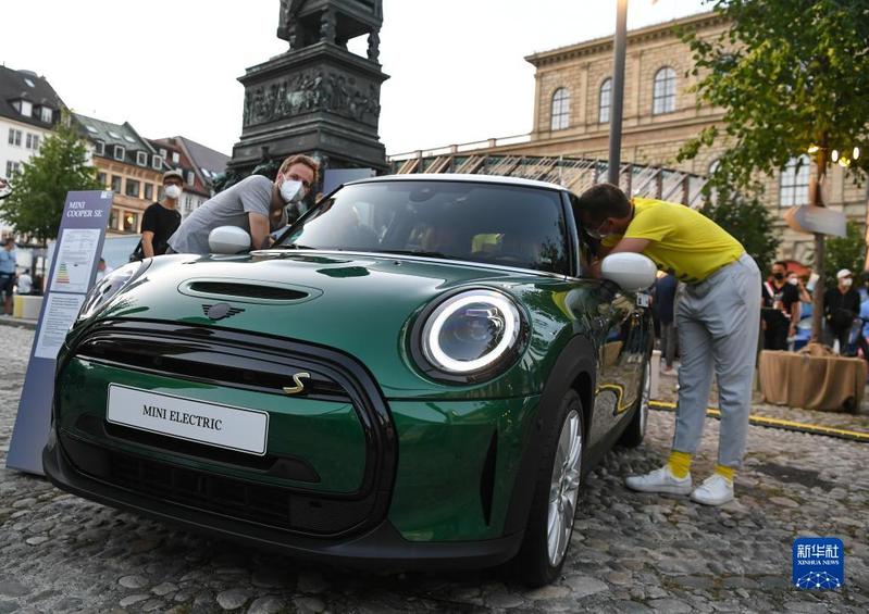 这是9月8日在德国慕尼黑国际车展宝马汽车户外展区拍摄的一台Mini电动车。