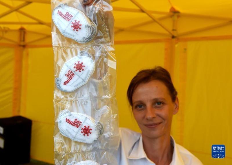 9月16日,奥地利邮政的工作人员在维也纳展示“迷你口罩”邮票。