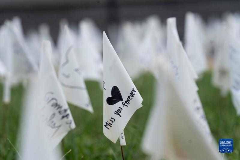 9月17日,写有“永远怀念你”字样的白色旗帜摆放在美国首都华盛顿的华盛顿纪念碑附近的草坪上,悼念美国超过66万名新冠逝者。