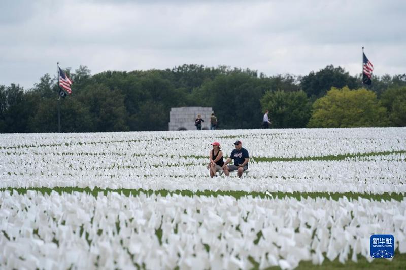 9月17日,超过66万白色旗帜摆放在美国首都华盛顿的华盛顿纪念碑附近的草坪上,悼念美国超过66万名新冠逝者。