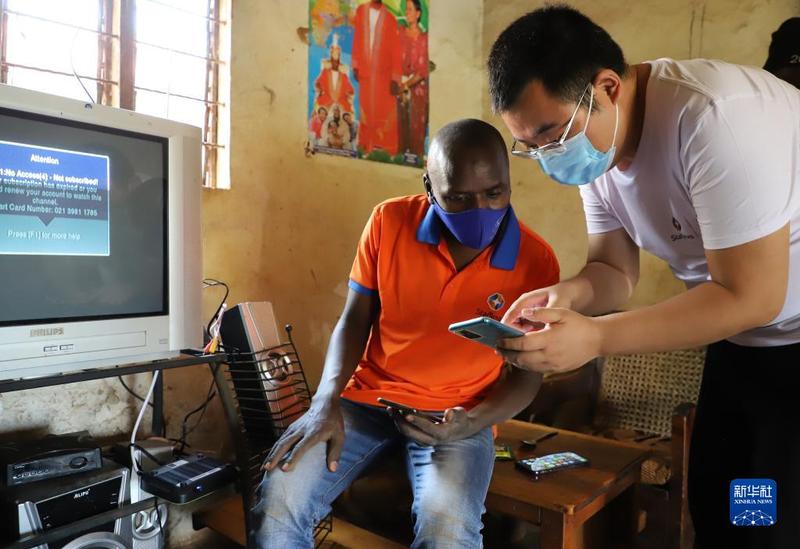 9月10日,在乌干达中部瓦基索区的布韦伦加村,技术人员安装调试数字电视设备。